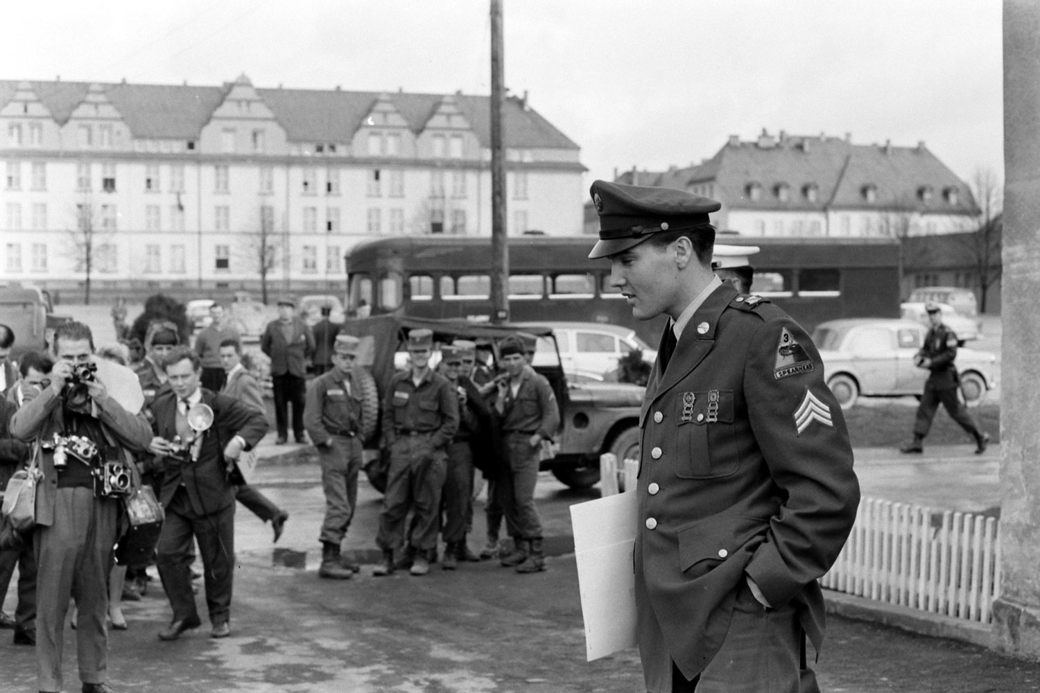 Elvis Presley at Fort Dix, New Jersey, shortly before his discharge from the U.S. Army, March 1960.