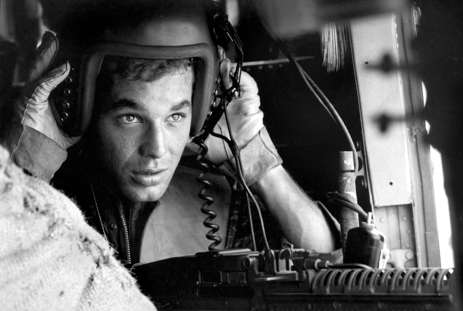 “[Twenty-year-old gunner, Pfc. Wayne] Hoilien was pouring machine-gun fire at a second V.C. gun position at the tree line to our left. Bullet holes had ripped both left and right of his seat. The plexiglass had been shot out of the cockpit and one V.C. bullet had nicked our pilot’s neck. Our radio and instruments were out of commission. We climbed and climbed fast the hell out of there. Hoilien was still firing gunbursts at the tree line.”