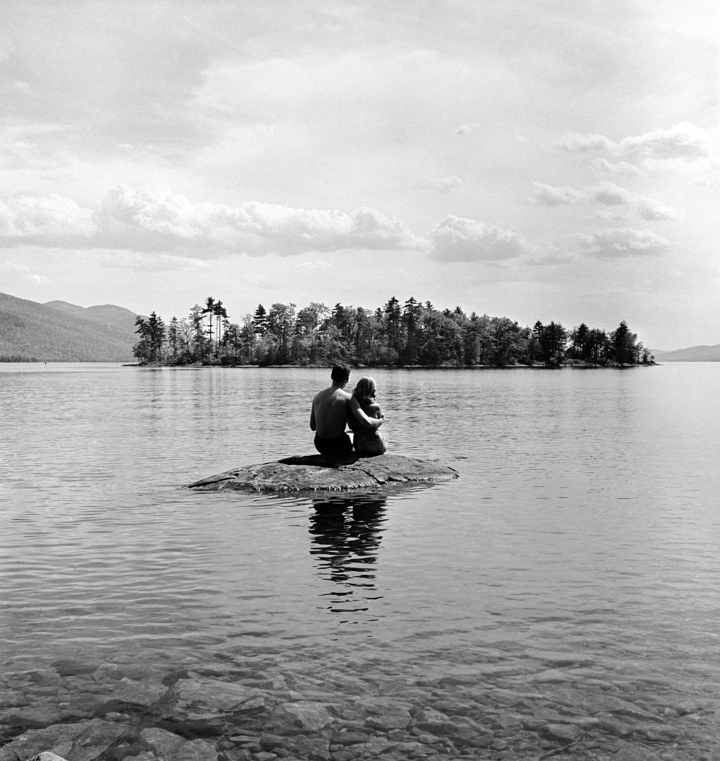 A young couple enjoyed a Lake George vacation in a Nina Leen photo entitled “Private Island,” 1941.