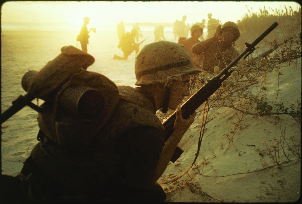 American soldiers of 7th Marines landing on the beaches of Cape Batangan during the Vietnam War. (Photo by Paul Schutzer/The LIFE Picture Collection © Meredith Corporation)