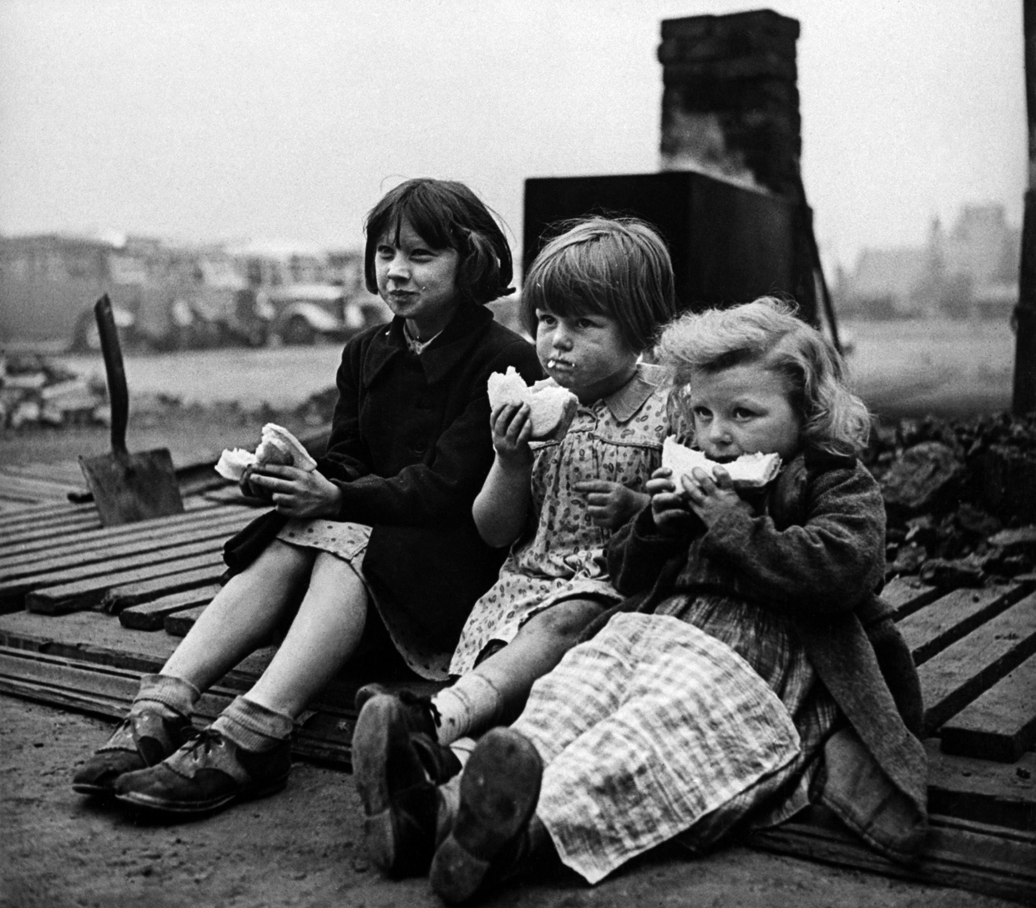 Children in Aldgate using the ruins of a bombed house as a stage for a vaudeville show. (Photo by Hans Wild/The LIFE Picture Collection © Meredith Corporation)