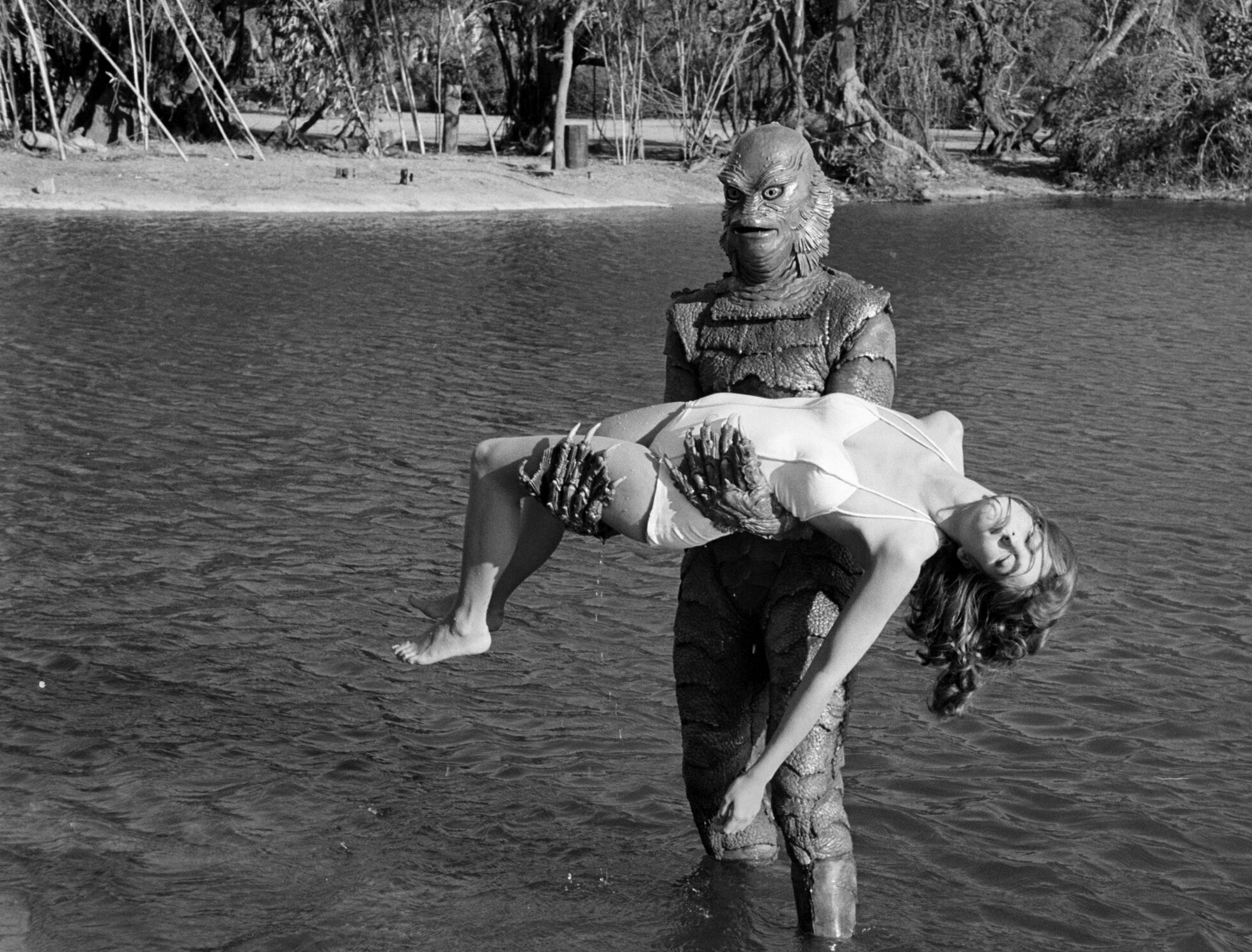 Actress Julia Adams is carried by “Gill Man”, the titular creature of the movie “Creature from the Black Lagoon,” 1953.