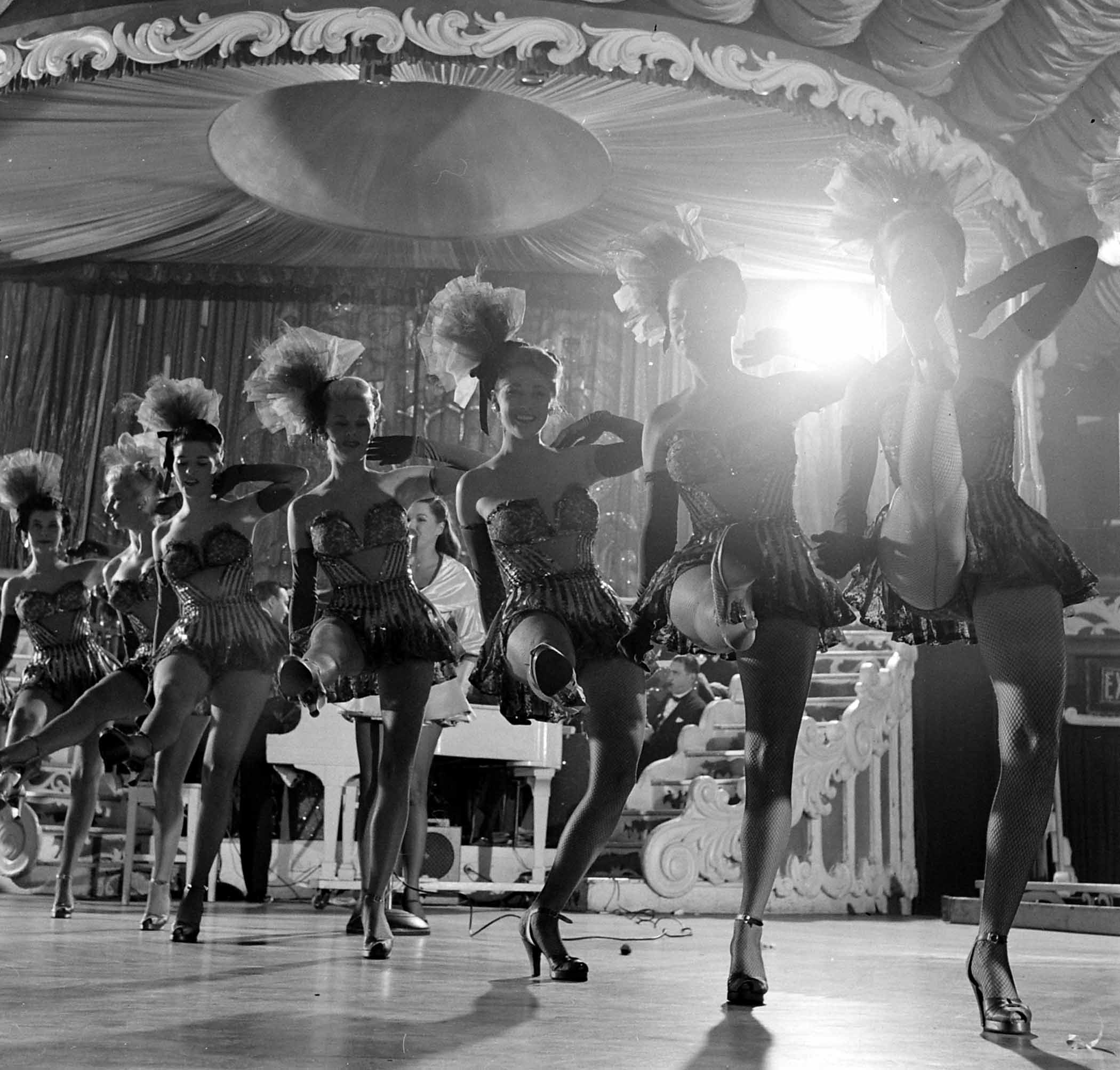 The photos by George Silk captured the whole boisterous scene, which included not just chorus girls but also singers and a comic named Frank Libuse, who pretended to be a waiter while delivering slapstick merriment to upscale patrons in the white tablecloth setting. The Latin Quarter was located in Times Square—just a couple blocks from the Time & Life Building, which may help explain how the club caught the attention of LIFE’s editors. But the club was undoubtedly a big deal, and in its heyday welcomed such legendary entertainers as Frank Sinatra, Ella Fitzgerald and Milton Berle.