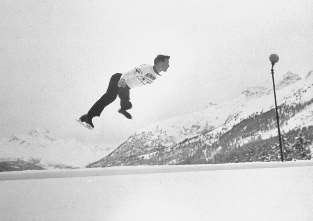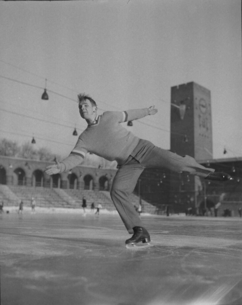 Dick Button at a figure skating competition in Stockholm, 1947.