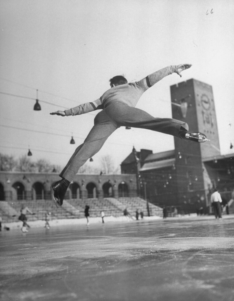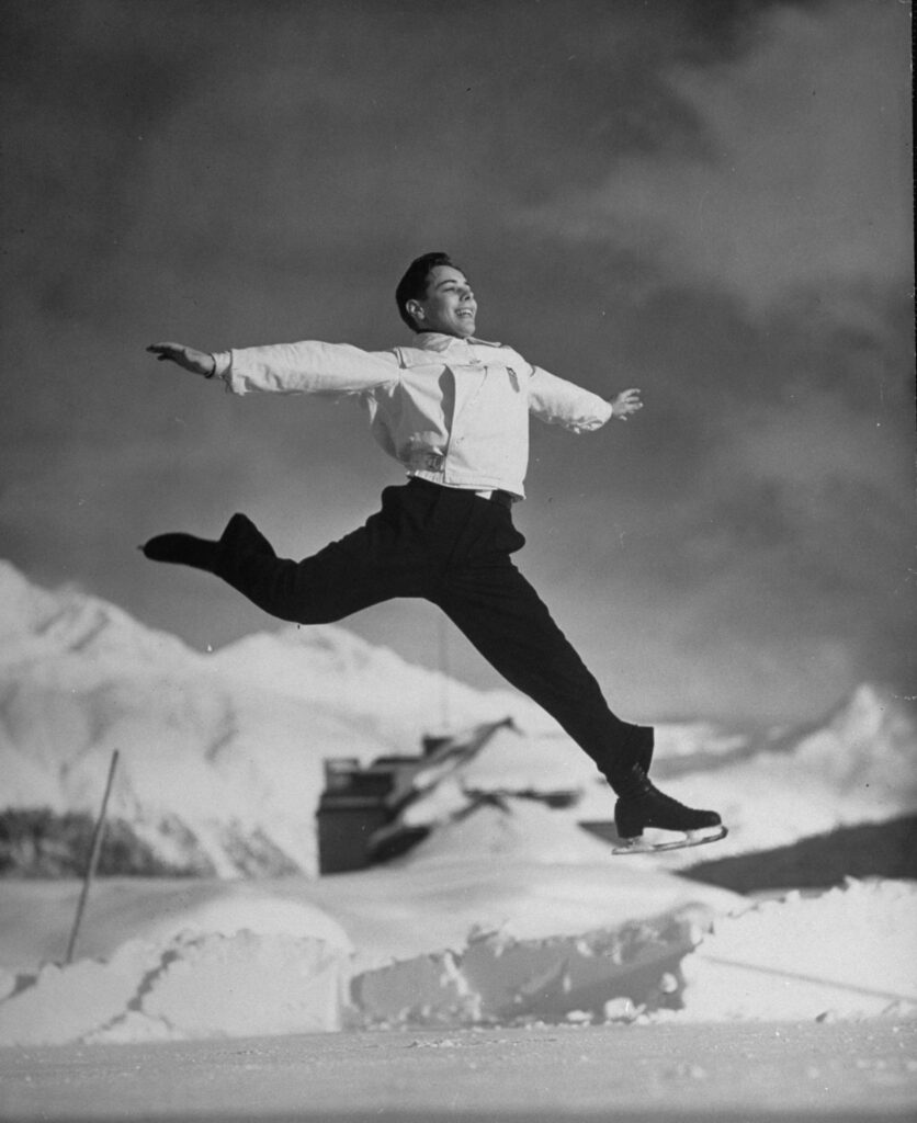 Images of Fleming are included in this gallery of LIFE’s favorite ice skating images, appearing alongside other skaters of great accomplishment. Barbara Ann Scott, a champion skater from Canada, was a particular fave of the magazine in the 1940s Two-time Olympic champion Dick Button, who would later become a television commentator, is shown making great leaps during his competitive years.